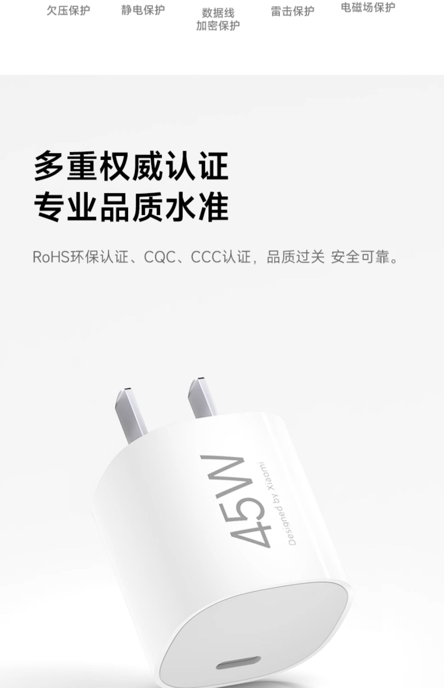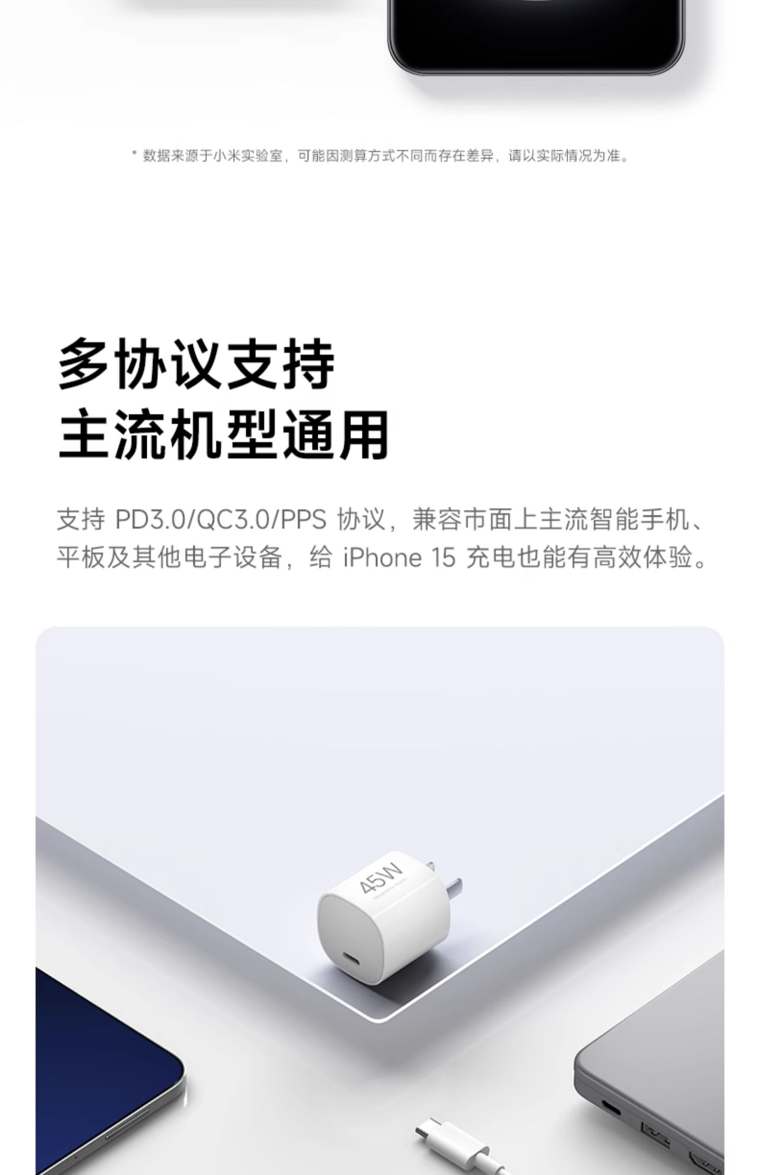 小米45WGaN小布丁充电器套装 (USB-C)小巧闪充氮化镓快充支持市面主流机型多协议