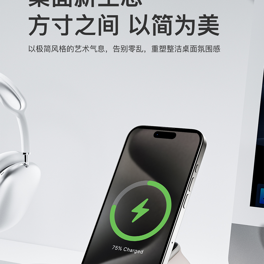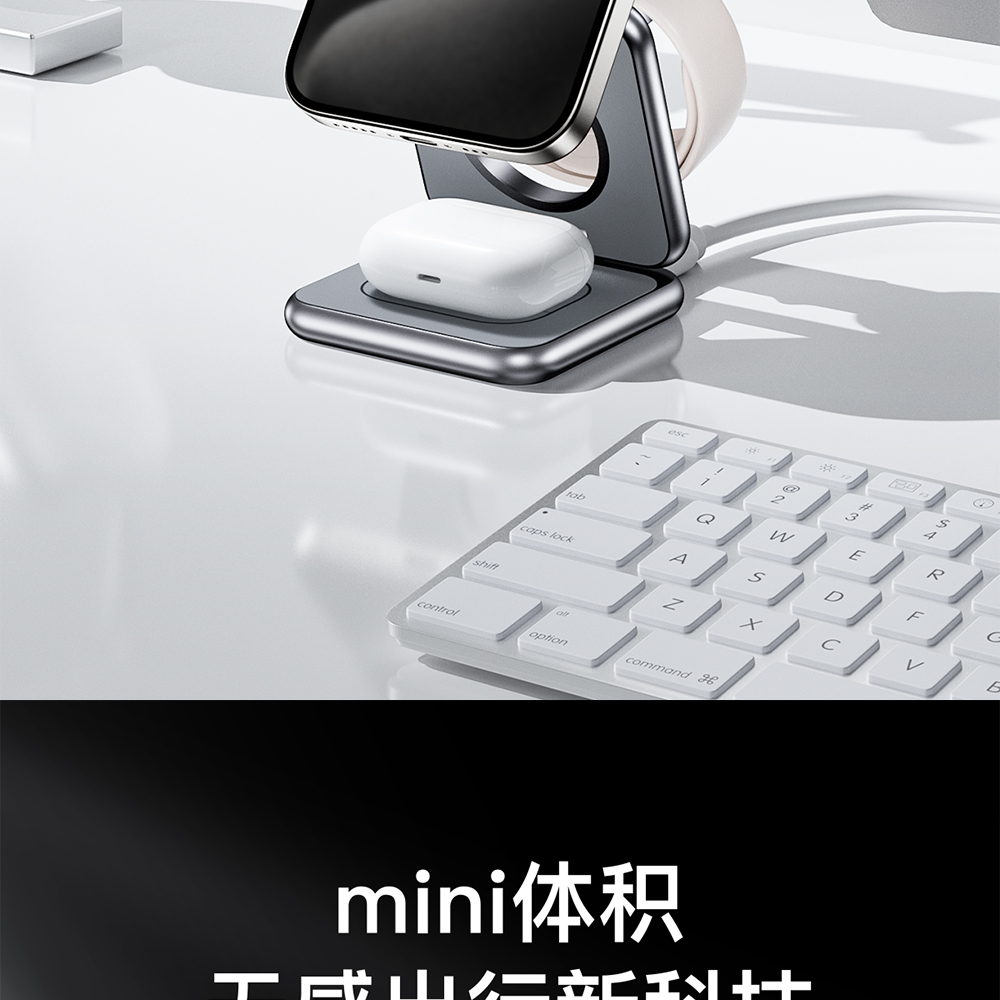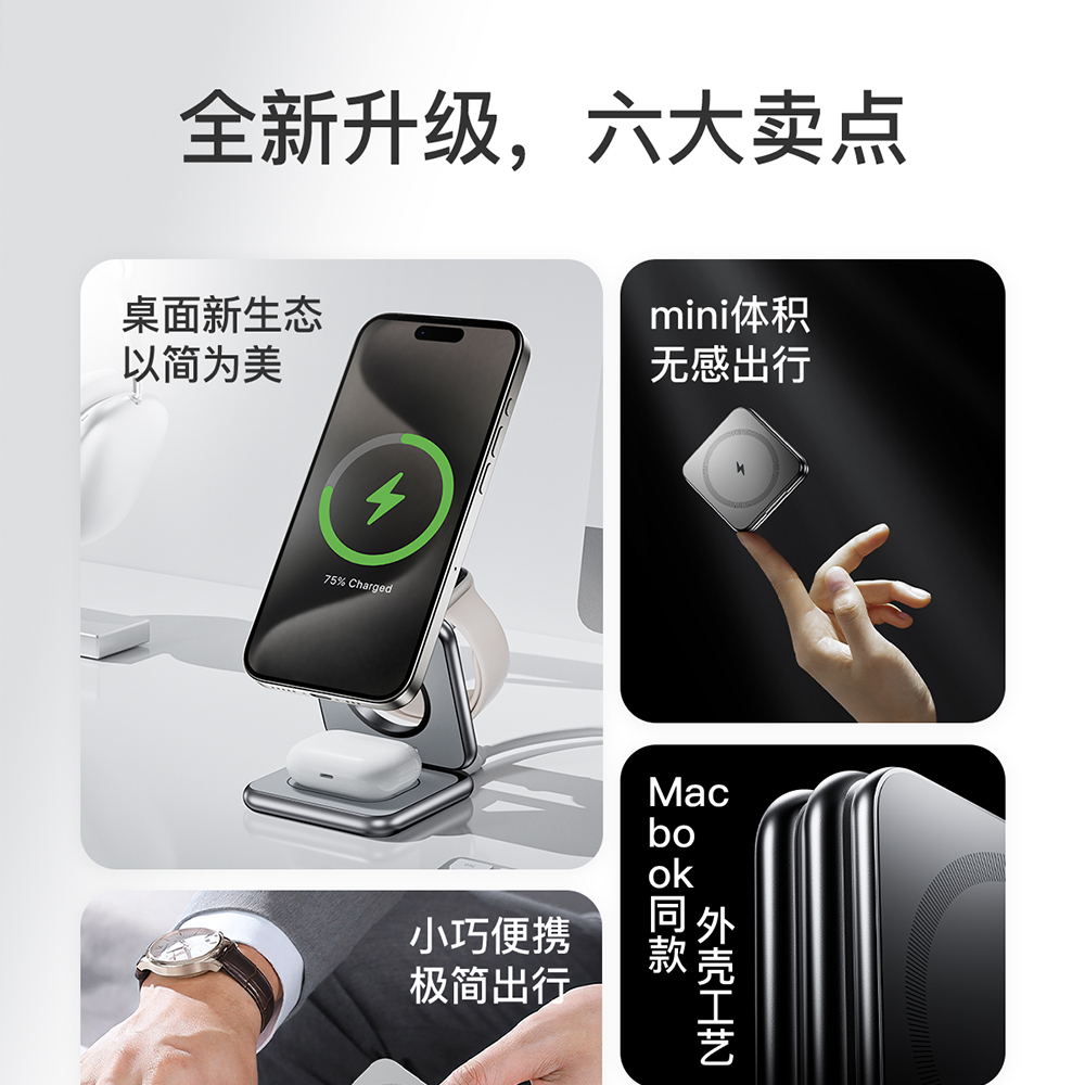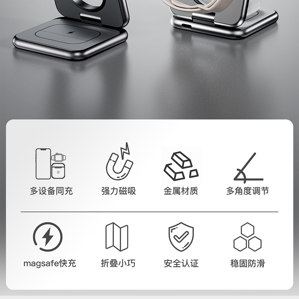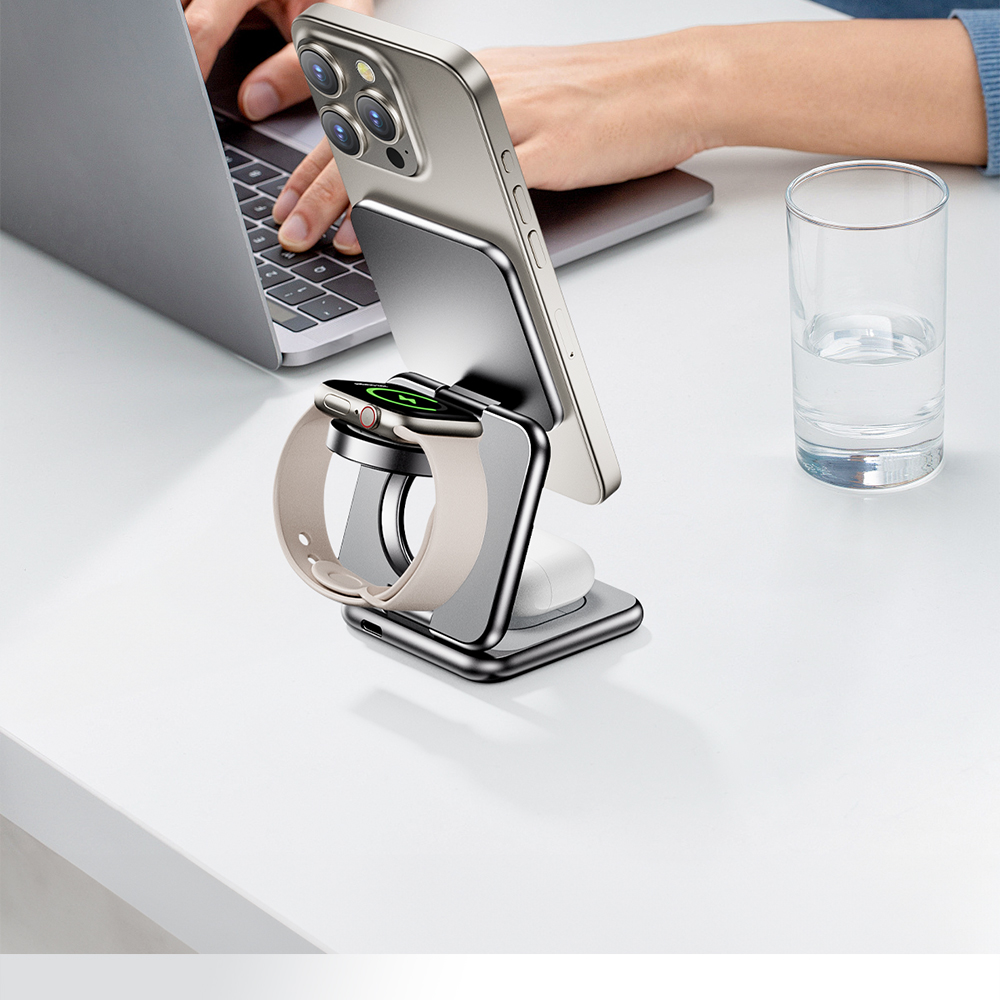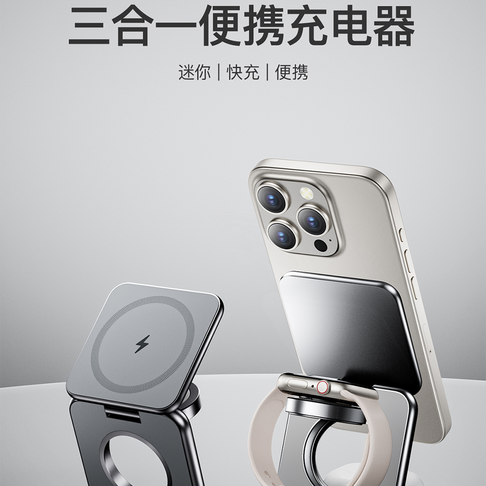 VANFU磁吸magsafe三合一无线充电器全家桶可折叠桌面支架适用苹果16手机airpods耳机iwatchS10手表充电座3in1