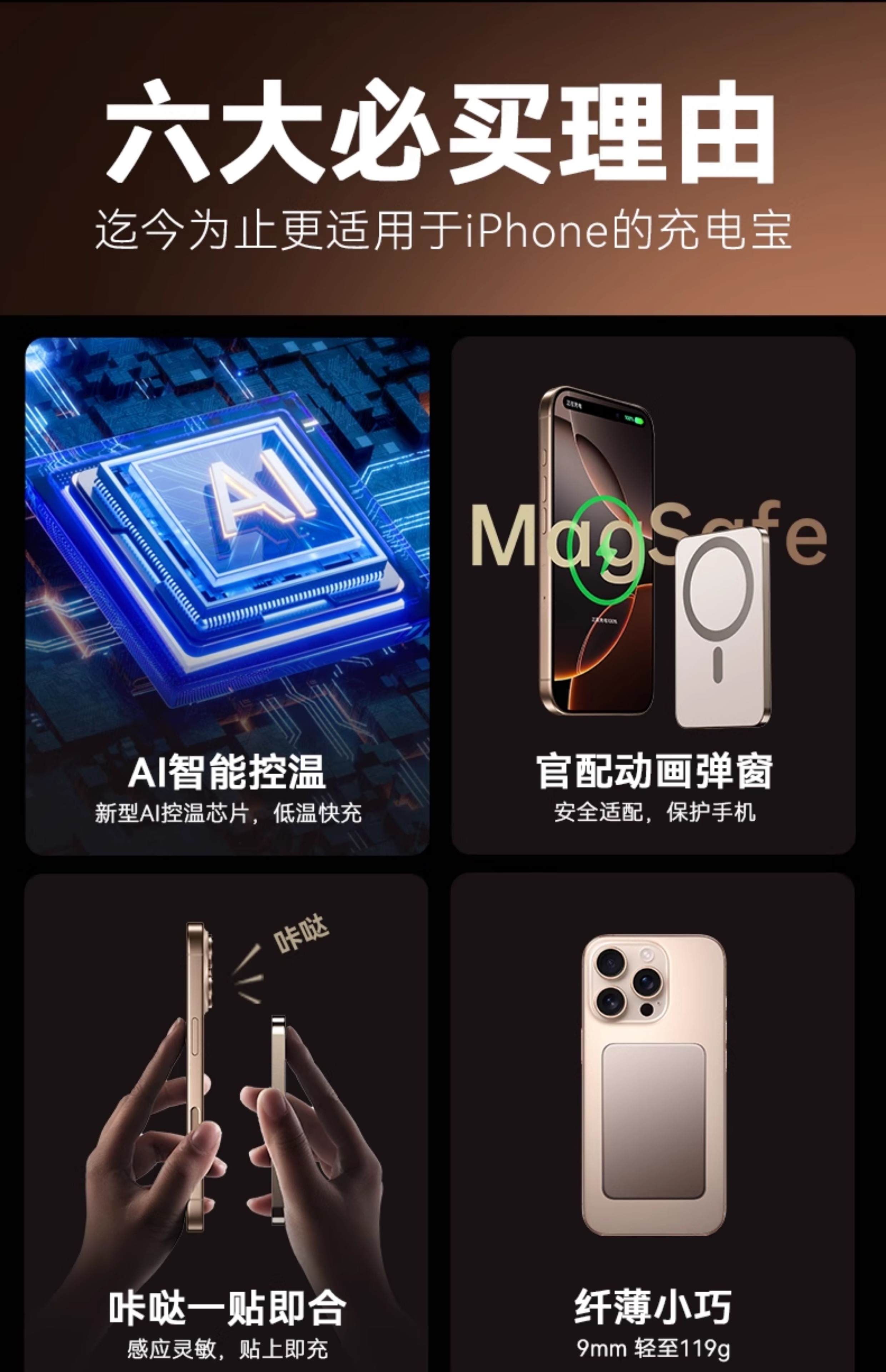 【国家3C认证丨30000M】E+E苹果磁吸充电宝无线Magsafe超级快充大容量超薄移动电源毫安适用所有手机