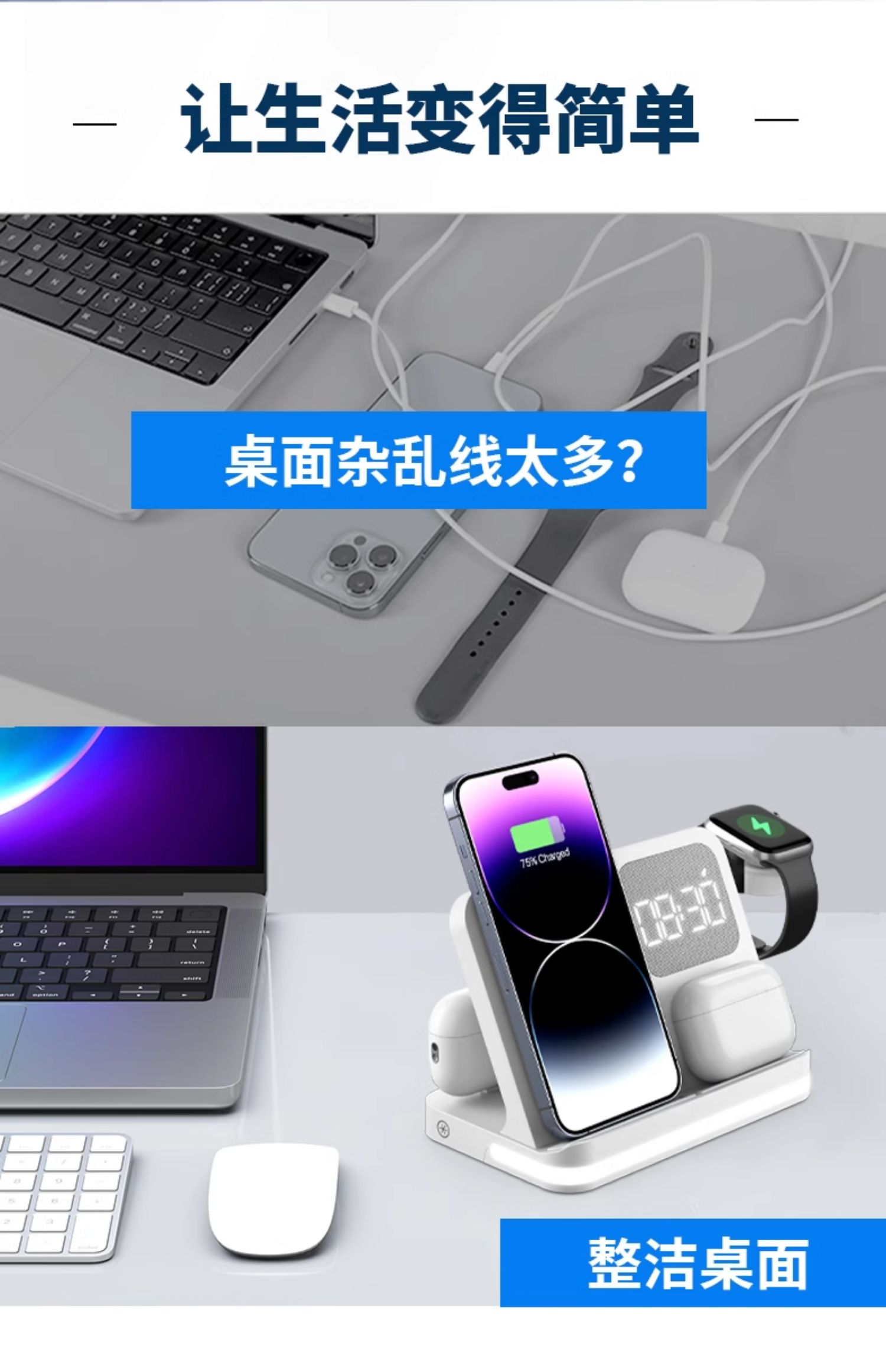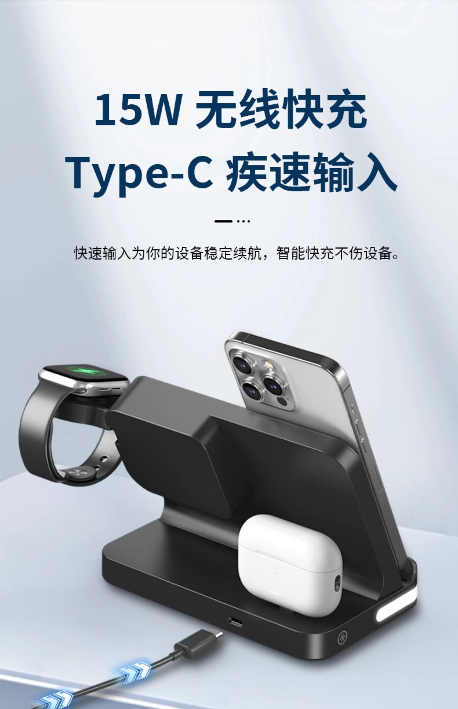 四合一无线充电器适用苹果applewatch10手表16pro手机iphone15快充时钟闹钟支架磁吸iwatch三合一底座耳机