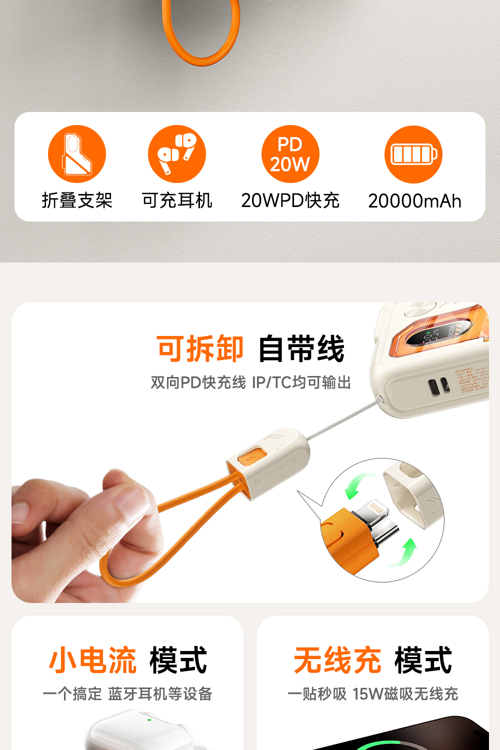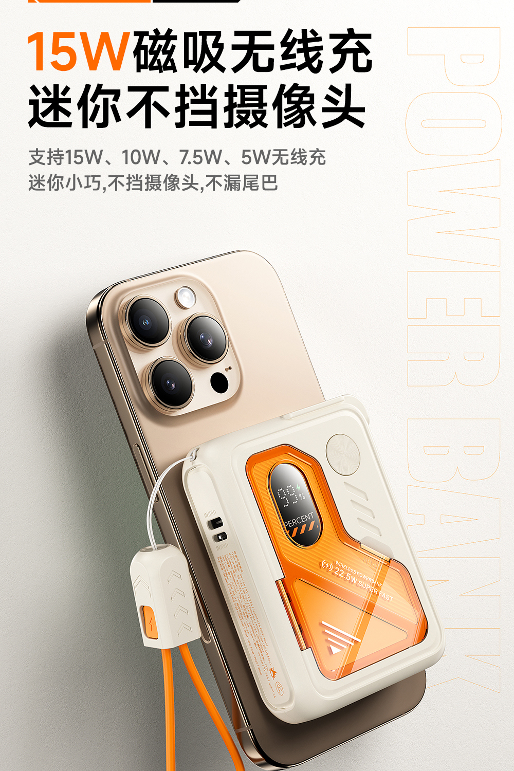 磁吸充电宝2025新款大容量20000毫安无线快充适用苹果手机便携移动电源飞机可携带