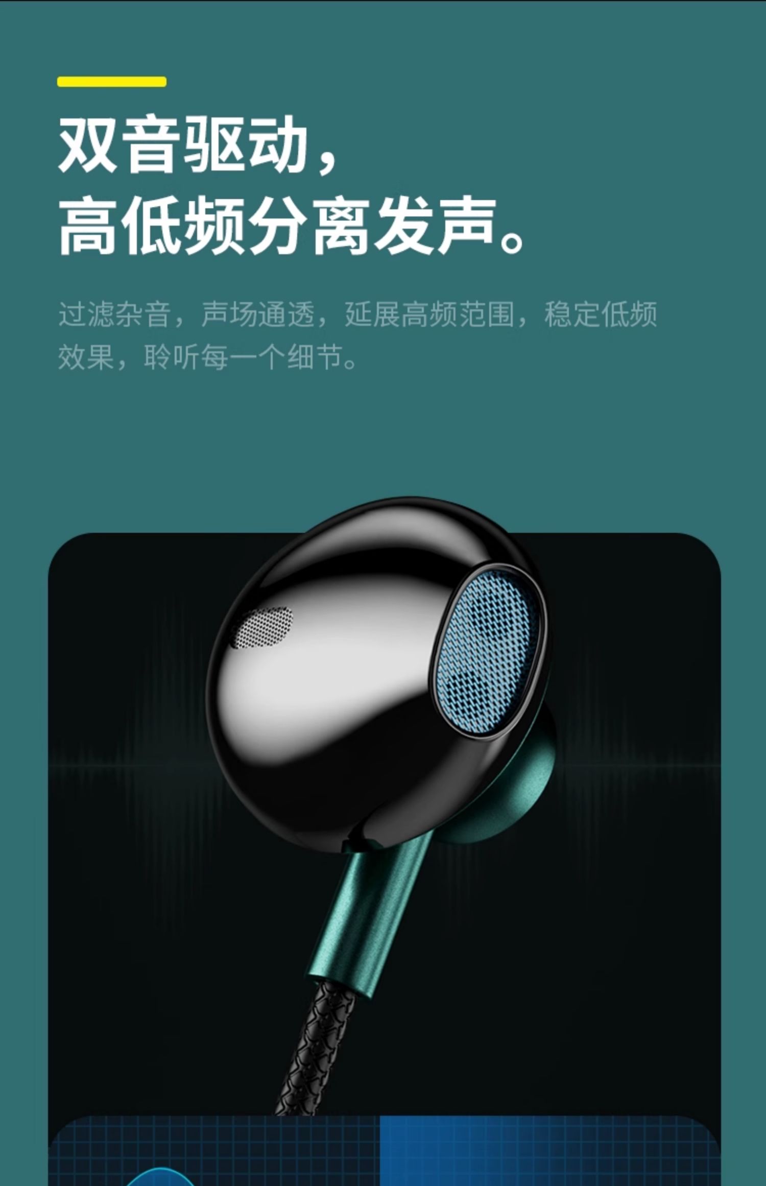 耳机有线降噪入耳式高音质typec接口圆孔适用华为小米苹果15/16