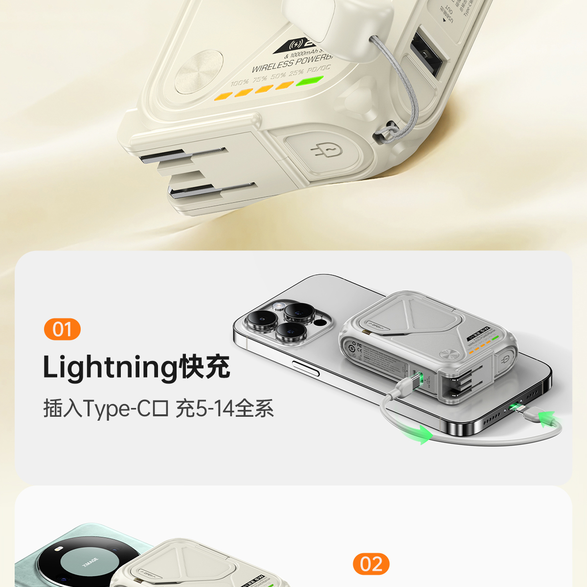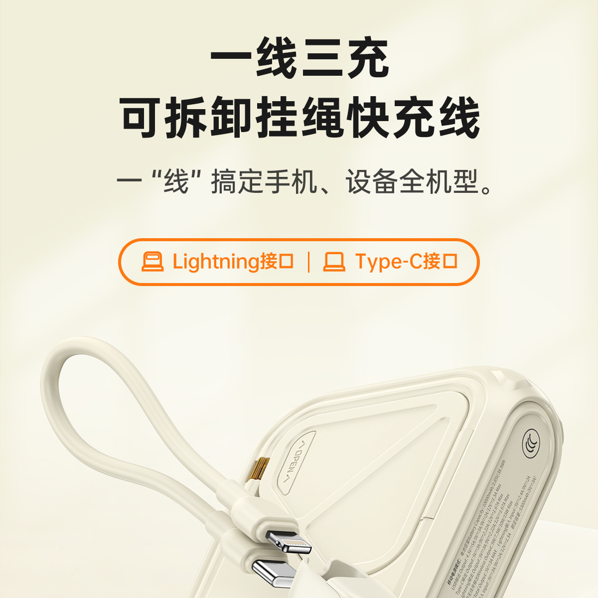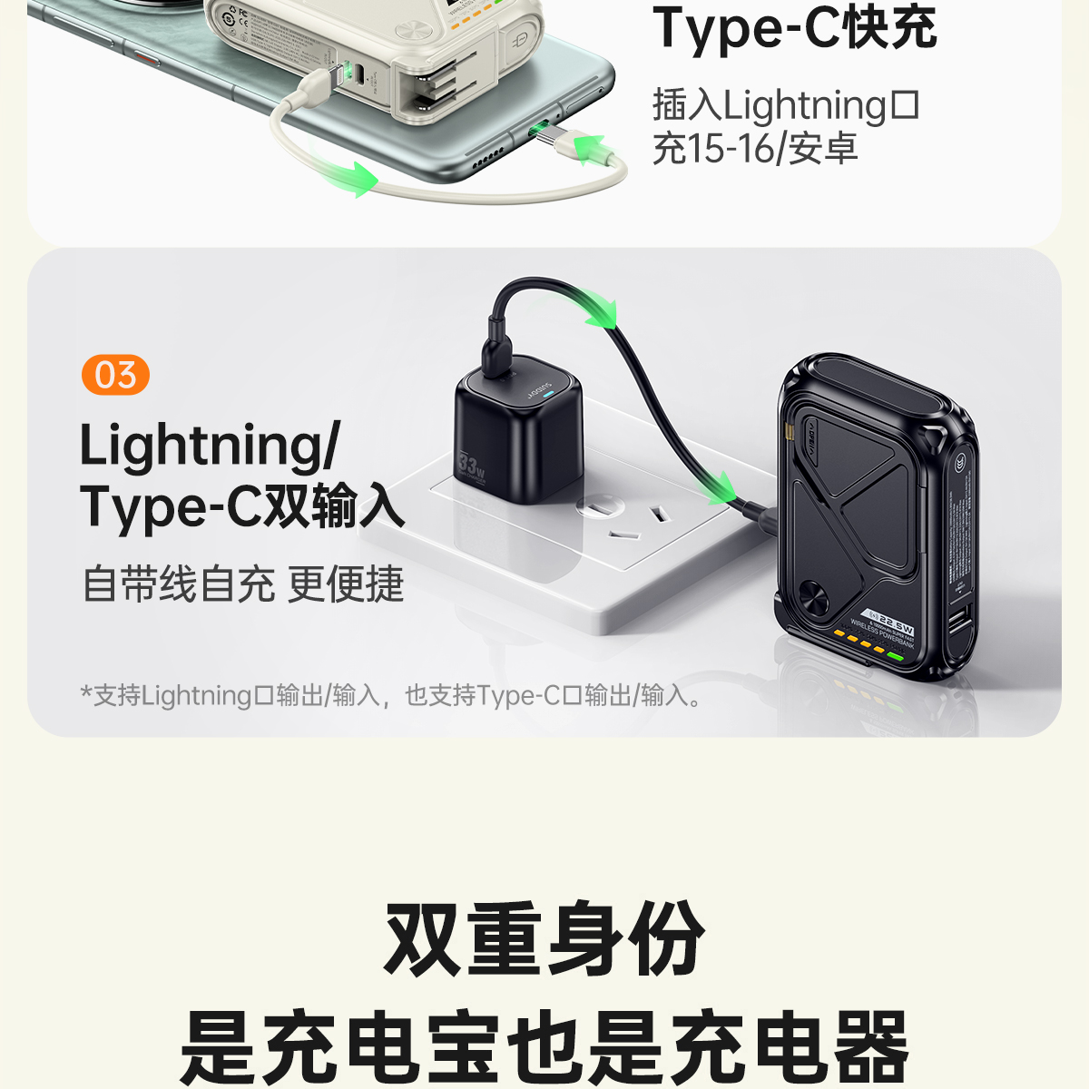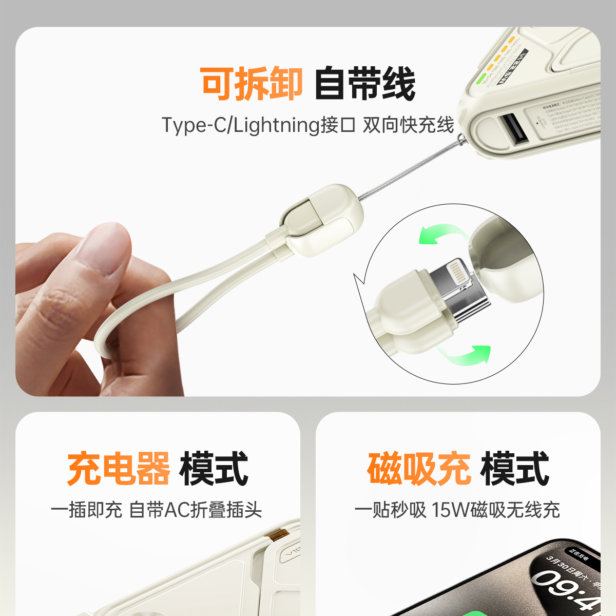 UIDDY自带线插头三合一磁吸快充2025新款适用iPhone16小米苹果15手机专用