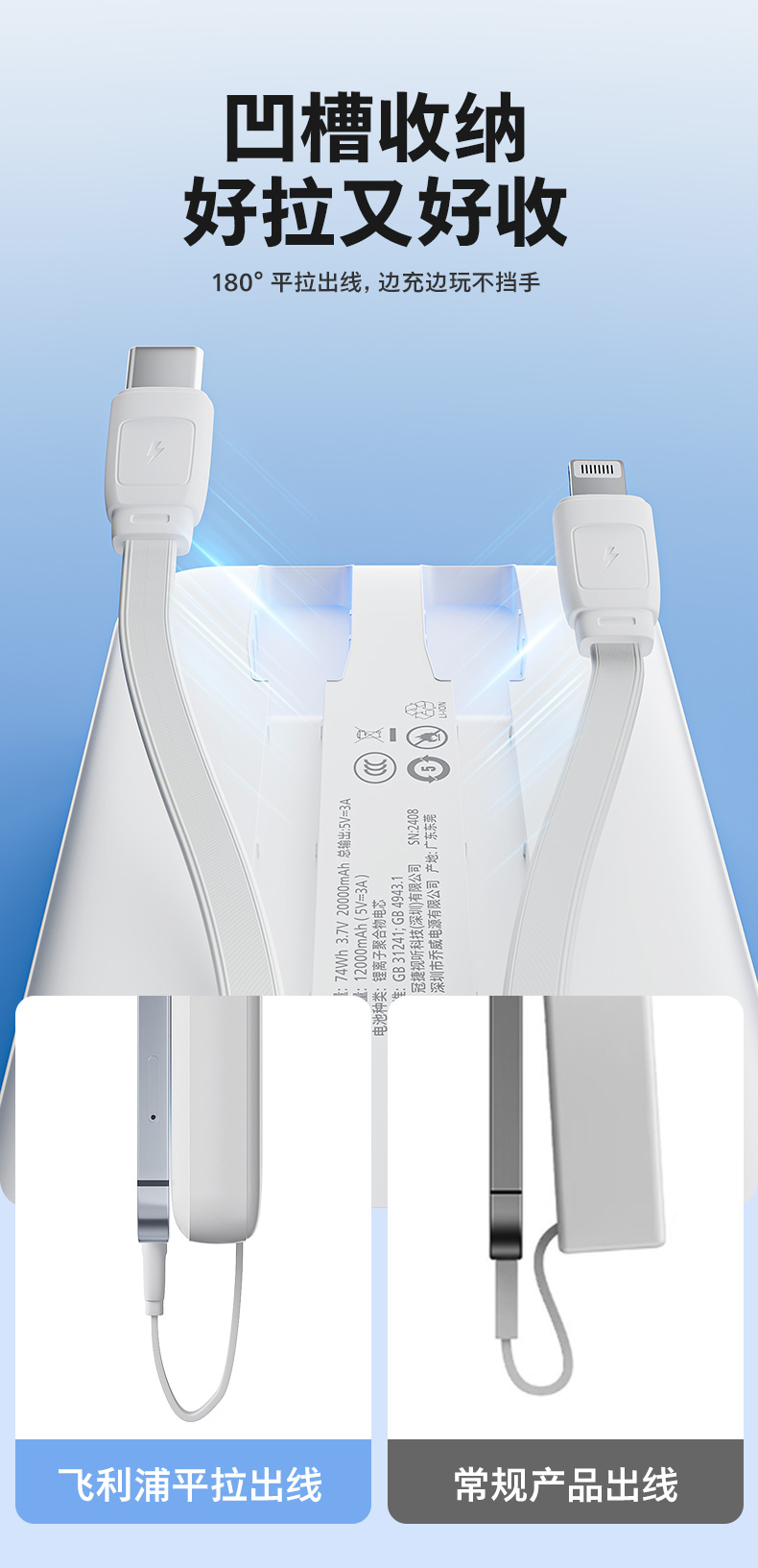 飞利浦2025新款充电宝快充大容量20000毫安自带线超薄小巧便携移动电源适用iphone16苹果15