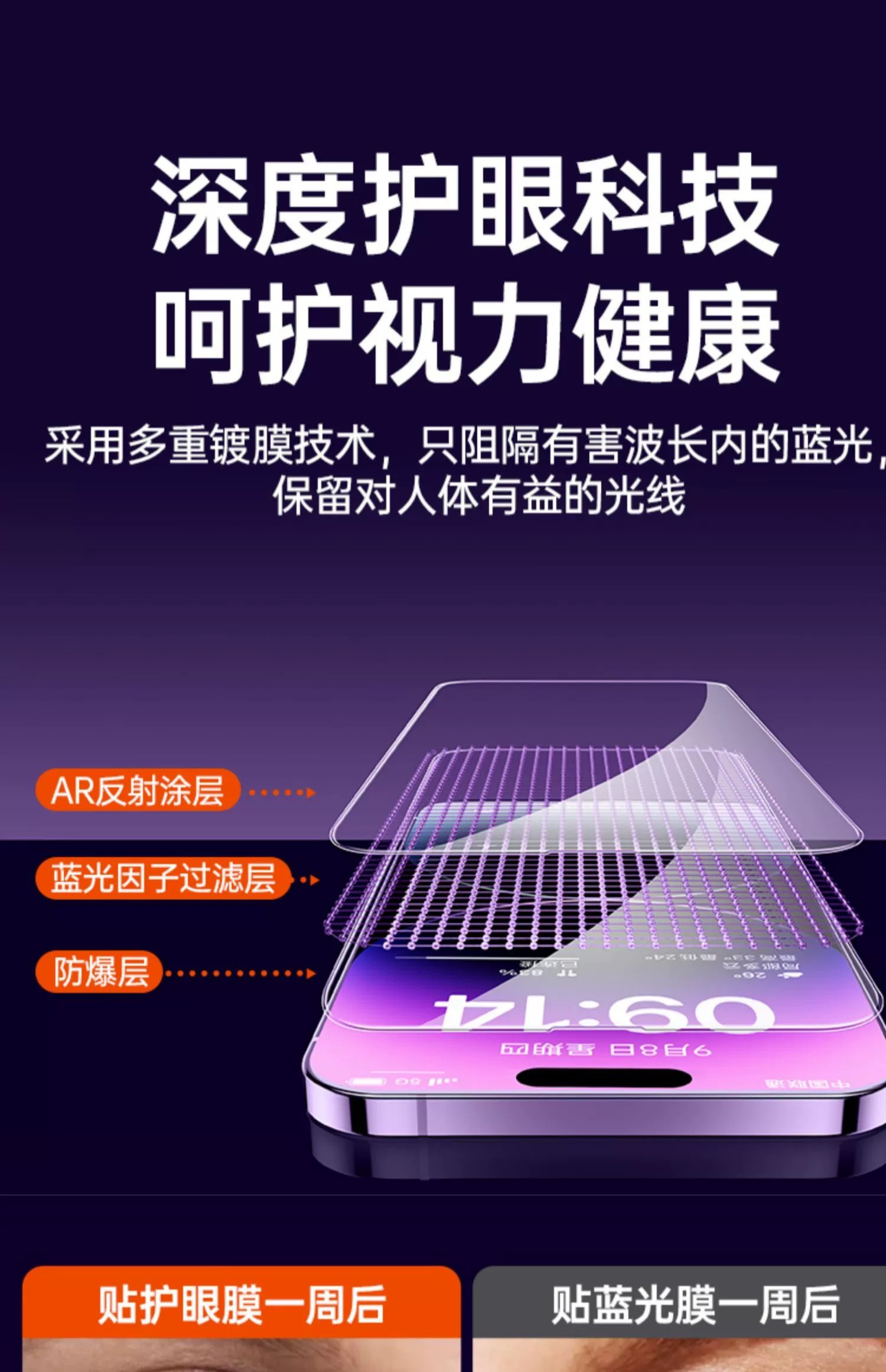 【超越AR德国护眼】笛曼适用于苹果16promax钢化膜iphone15pro手机Plus防窥贴膜14防蓝光13防偷窥por新款12抗